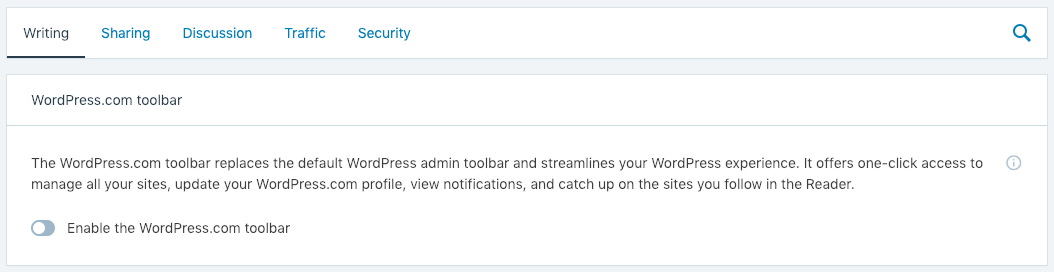 I noticed the toolbar settings lives in the "writing" section of settings. This isn't specifically writing related, I think it would make more sense in "general".