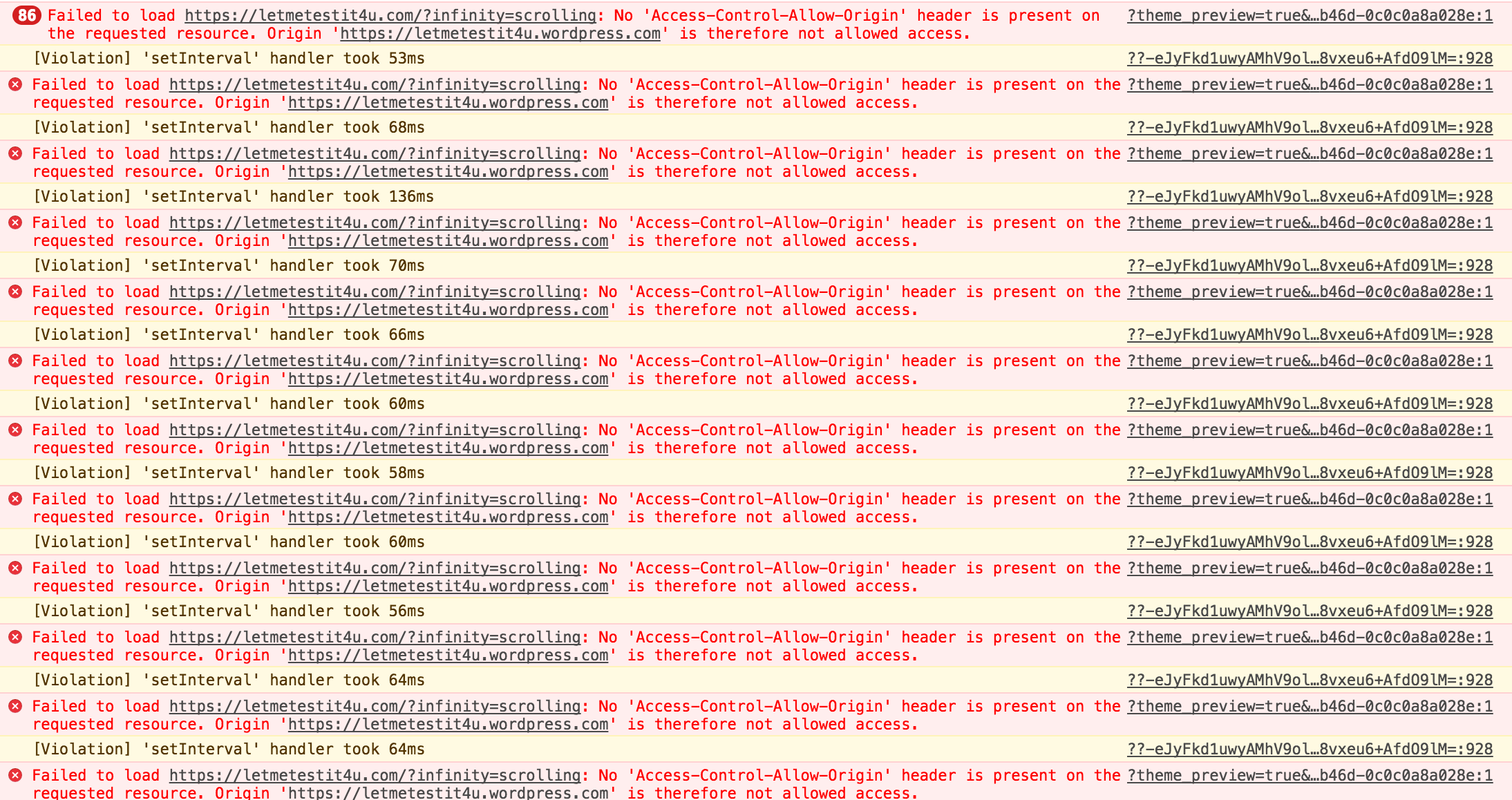 Failed to load resource: Origin https://lance.wordpress.com is not allowed by Access-Control-Allow-Origin. XMLHttpRequest cannot load https://lance.blog/?infinity=scrolling due to access control checks