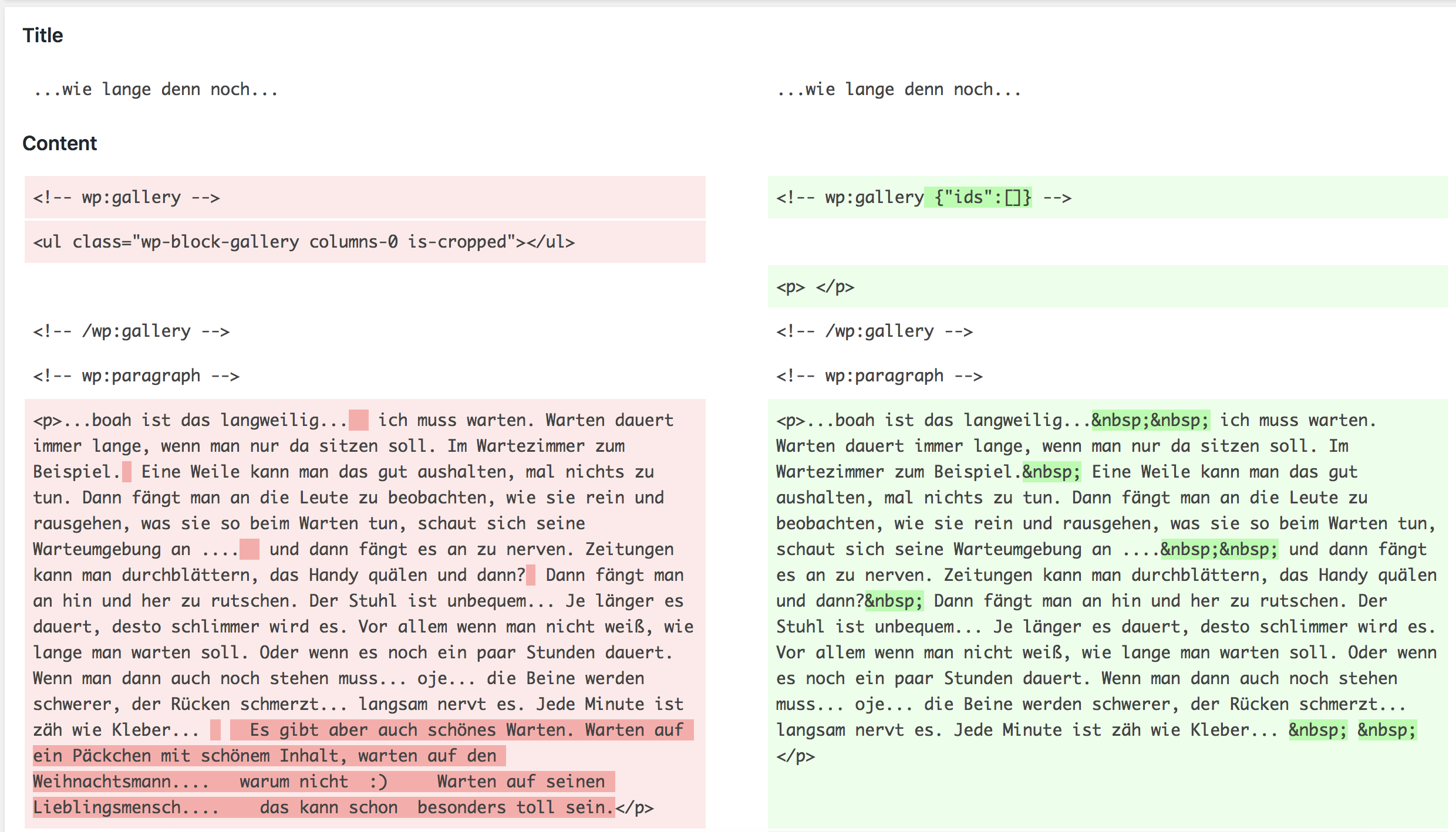 @dmsnell Sorry for the extra ping but I just tried to run the function you have mentioned for the post with the broken block (within Chrome DevTools > Console), just wanted to check if this is the type of output you were expecting...?
