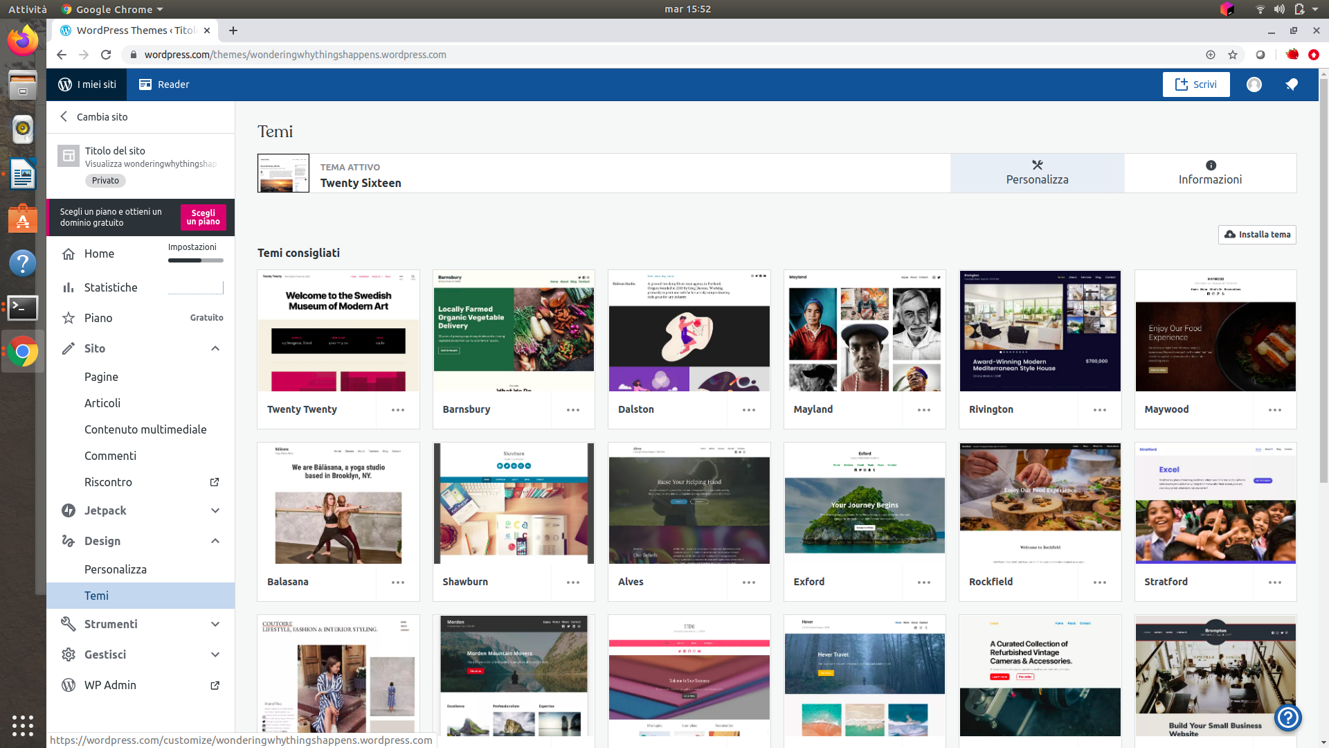 It should be the Customizer URL to match the label. https://wordpress.com/customize/[subdomain].wordpress.com