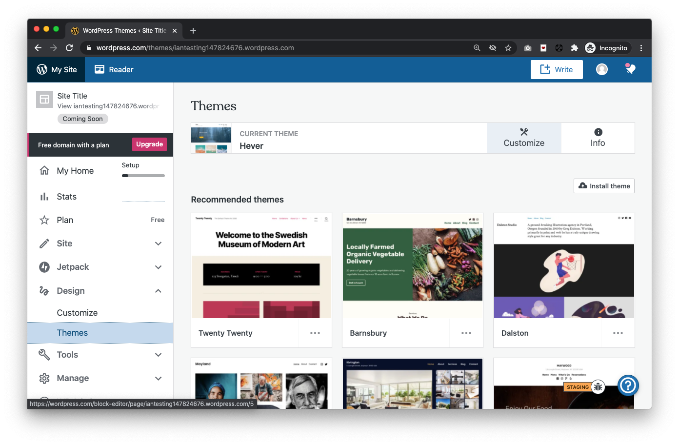 Ahh! Did you try changing the theme on your test site to Hever? https://wordpress.com/theme/hever That's the default theme for new users, as seen in the issue description screenshot.