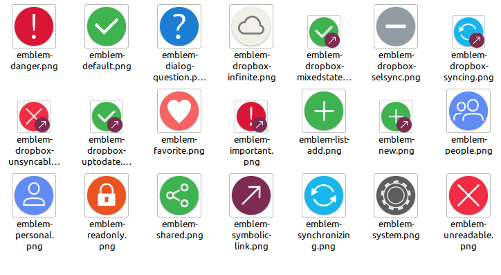 Oh, interesting. That's great, love the colour emblems, and I see them in my build. Screenshot is from the tortoisehg nautilus extension, not sure why it is not using those emblems - maybe because they have "dropbox" in the name? I'll investigate. Is a separate issue in any case.