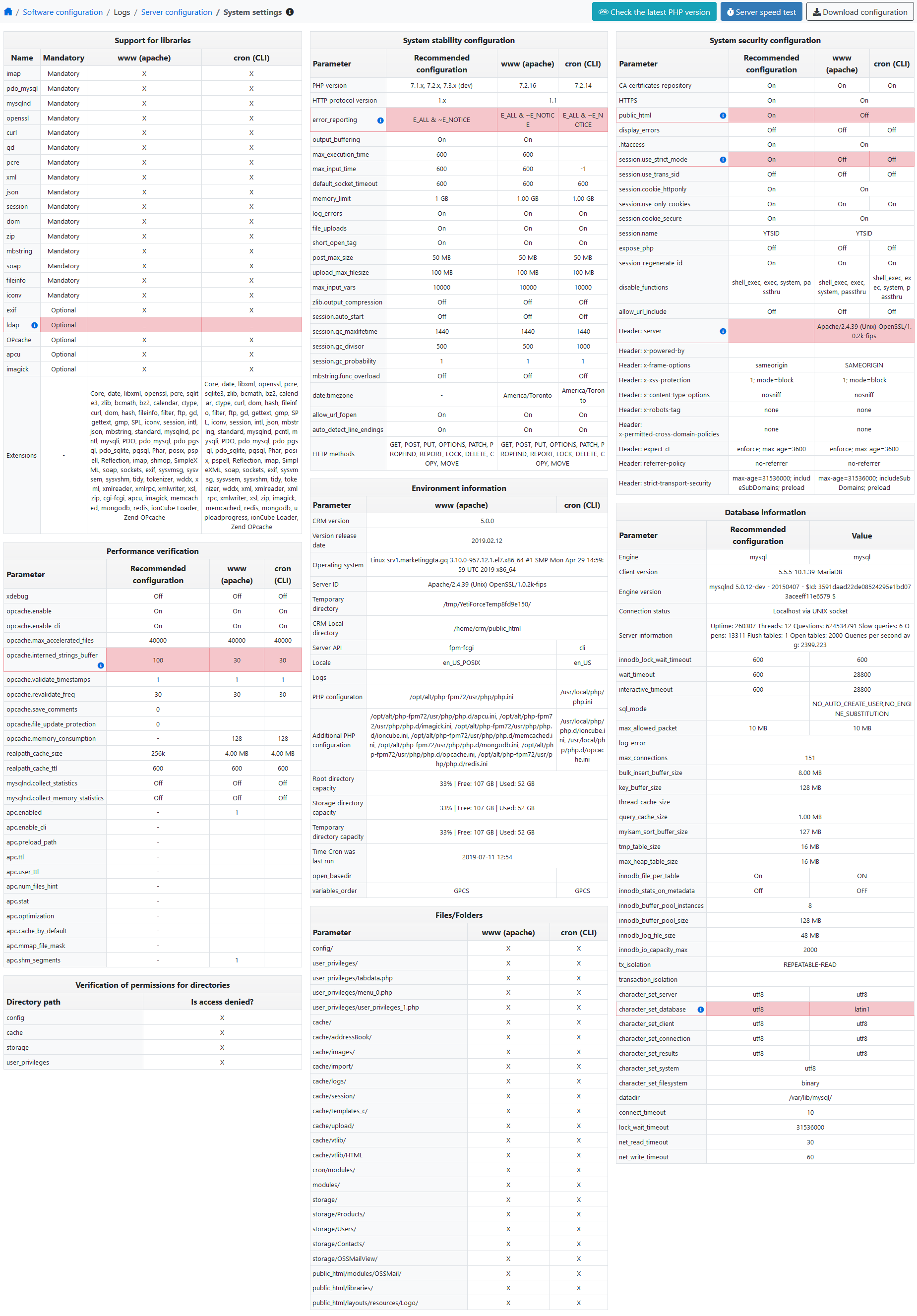 | Database (name and version) | 10.1.39-MariaDB |